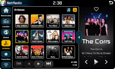 Hardware integration: You can use the radio and steering wheel buttons to play the next or previous station. To display NetRadio on the screen, simply press the physical "RADIO" button..